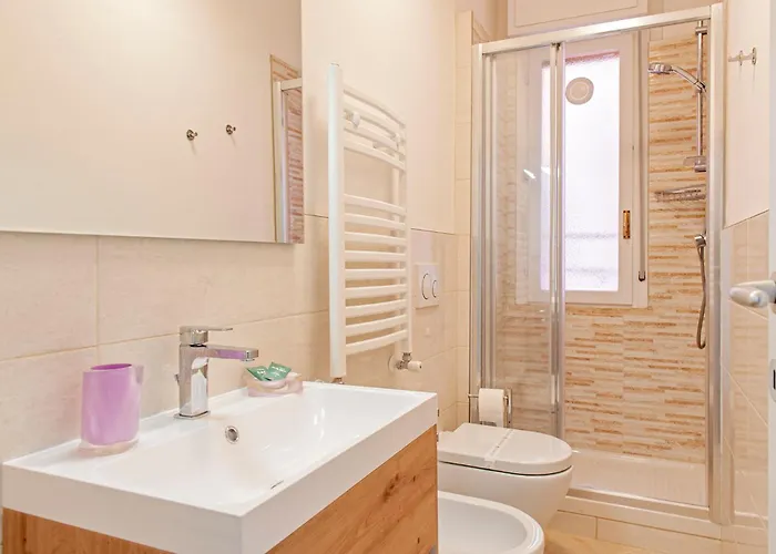 Homiday - New Flat - Moderno - Pisa - Cisanello Appartement biedt gasten een zitruimte, evenals modern comfort zoals airconditioning. Deze 1-badkamer accommodatie is uitgerust met een badkamer met een haardroger, badjassen en badlakens. Bovendien is er ook een bidet, een apart toilet en een douche.